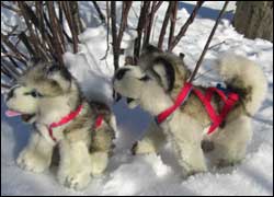Kunststofftafeln, Miniaturschlitten& Plüschhusky